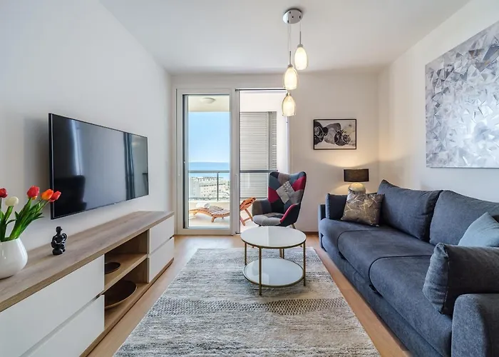 65m²のスプリトGolden View 8アパートメントはディオクレティオヌス宮殿からたった1.8キロメートルで、スプリト・リヴァから徒歩で25分の場所にあります。 お客様はこの寝室1室のアパートの共用ラウンジから庭園の景色を眺めながらリラックスできます。